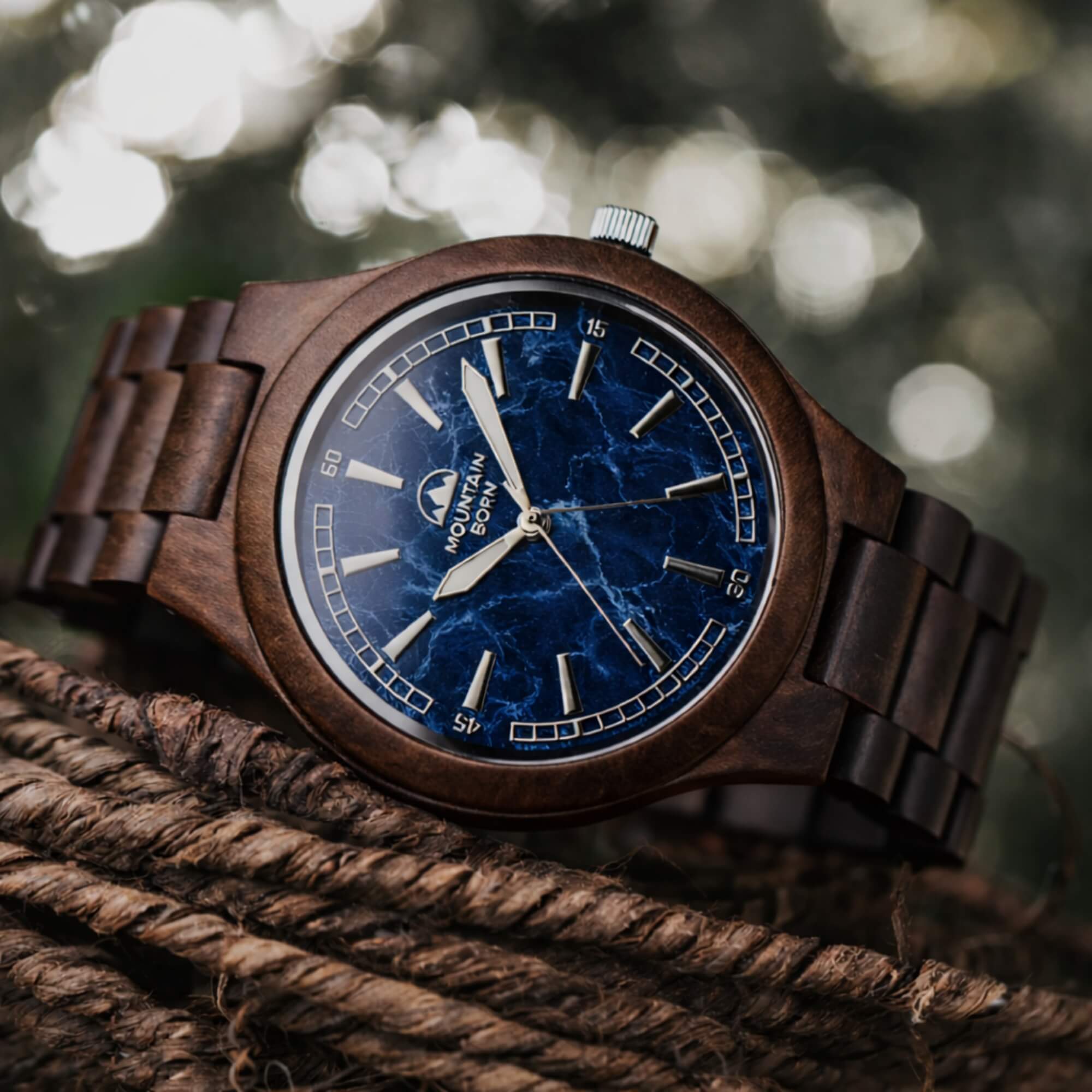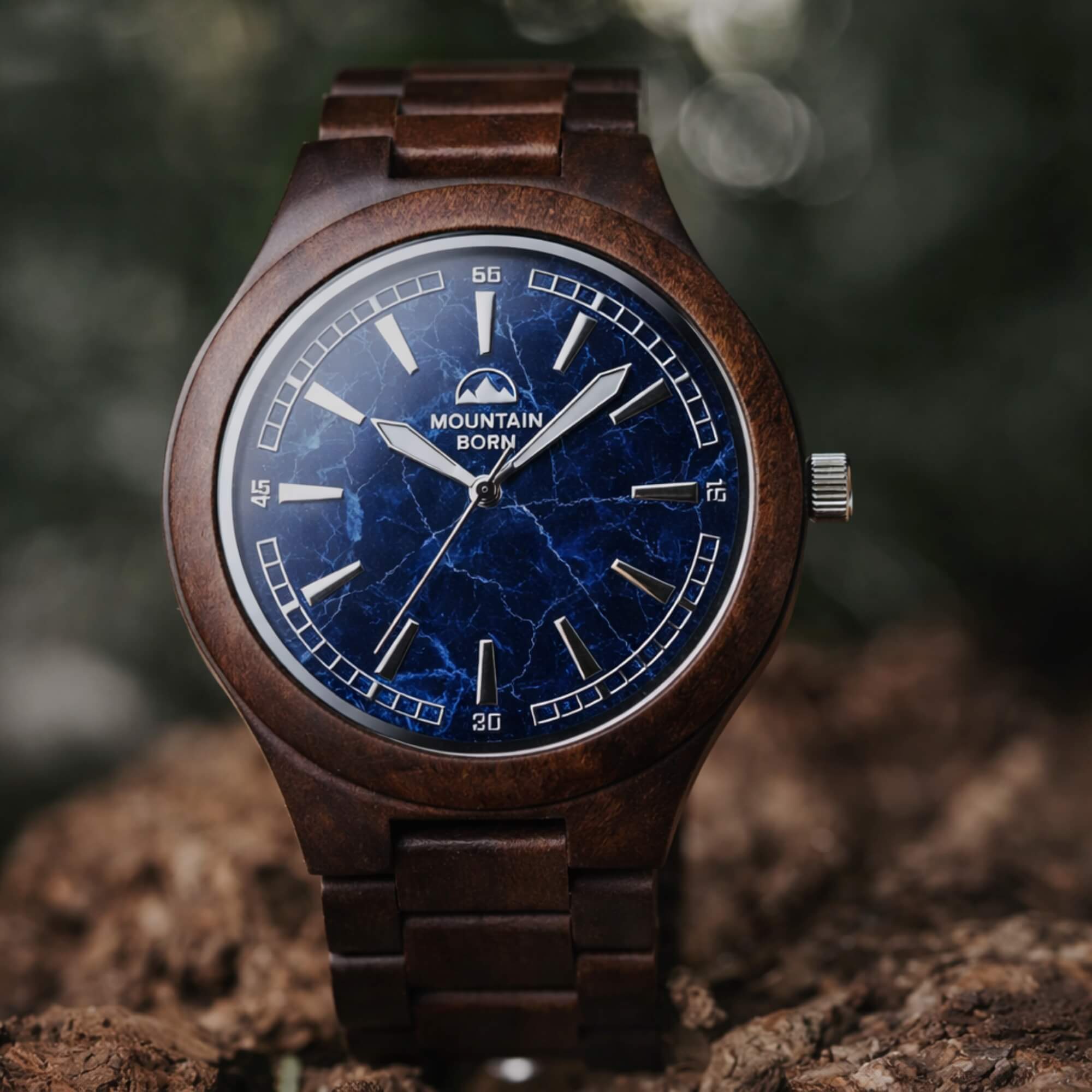 In the realm of timekeeping at Mountain Born, our wood watches are not just instruments; they're artisanal expressions of sustainability and a profound connection with nature. In stark contrast to conventional watches, each wood timepiece we create is a masterpiece, intricately designed from ethically sourced wood that tells a story of renewal and authenticity.