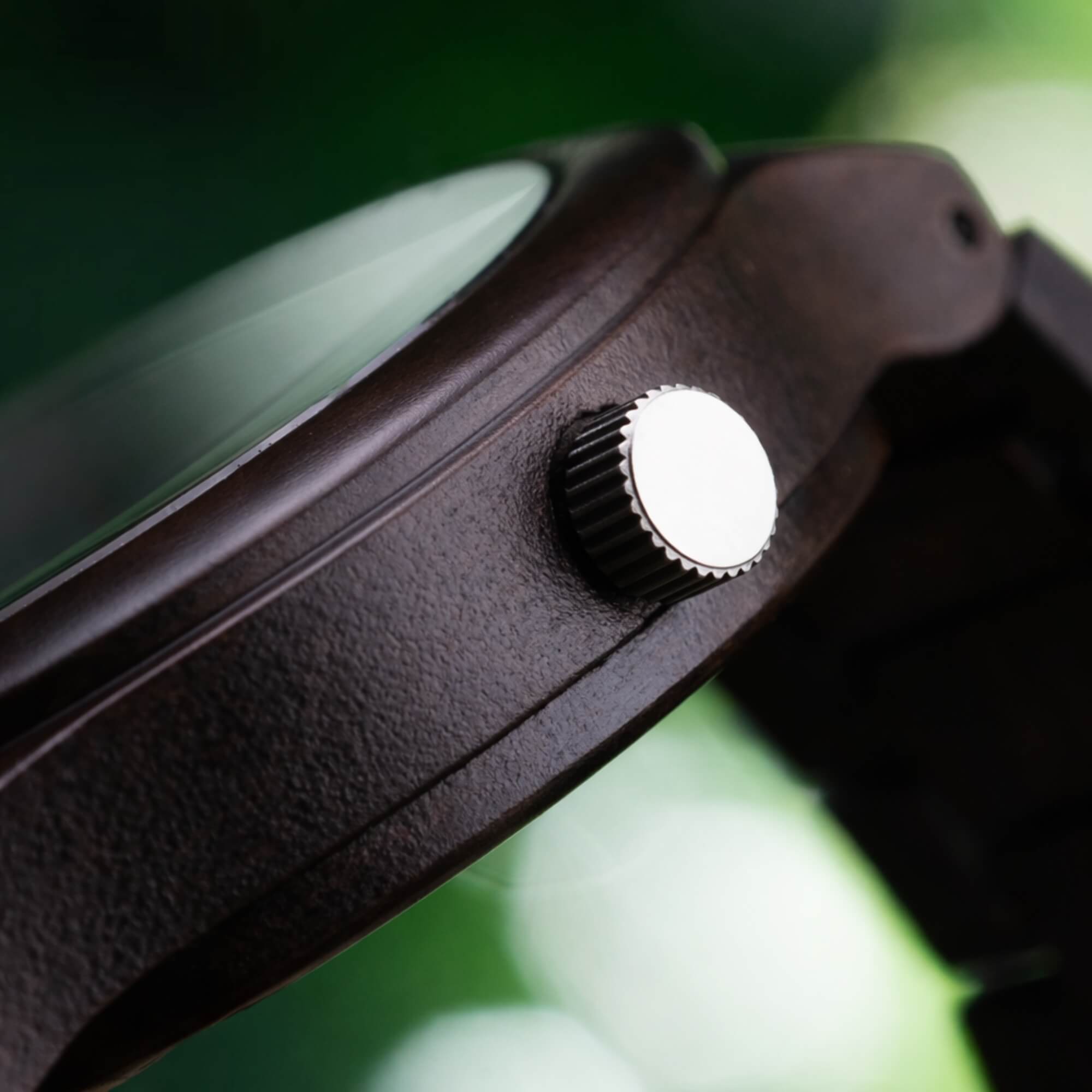 The adjustable strap is built from alternating ebony and rosewood links for a comfortable, natural fit. Add a custom engraving to turn it into one of the most unique engraved wooden watches for men – a thoughtful choice for anyone who values design and craftsmanship. Each men's personalized watch carries its own grain pattern, making no two exactly alike.