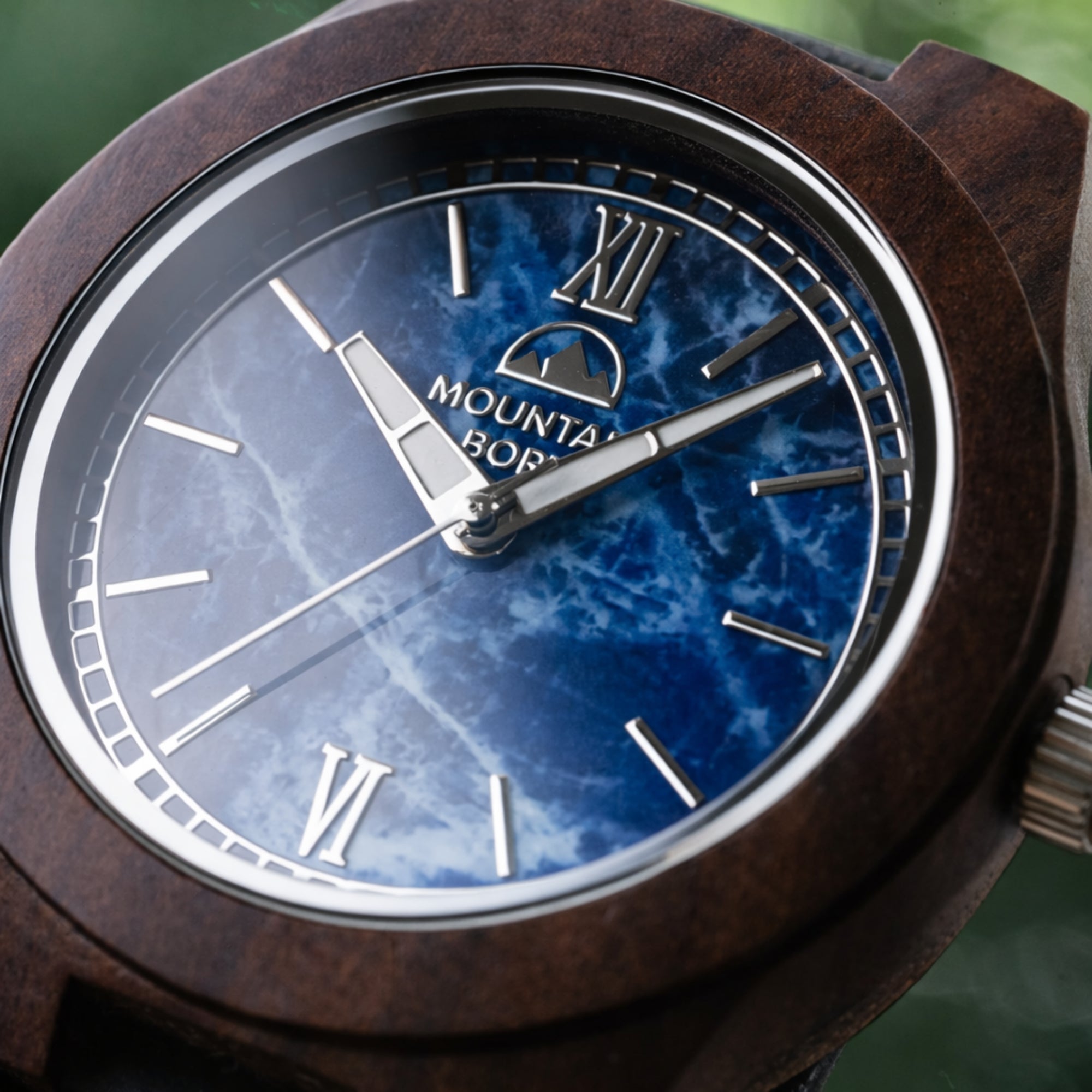 In the realm of timekeeping at Mountain Born, our wood watches are not just instruments; they're artisanal expressions of sustainability and a profound connection with nature. In stark contrast to conventional watches, each wood timepiece we create is a masterpiece, intricately designed from ethically sourced wood that tells a story of renewal and authenticity.