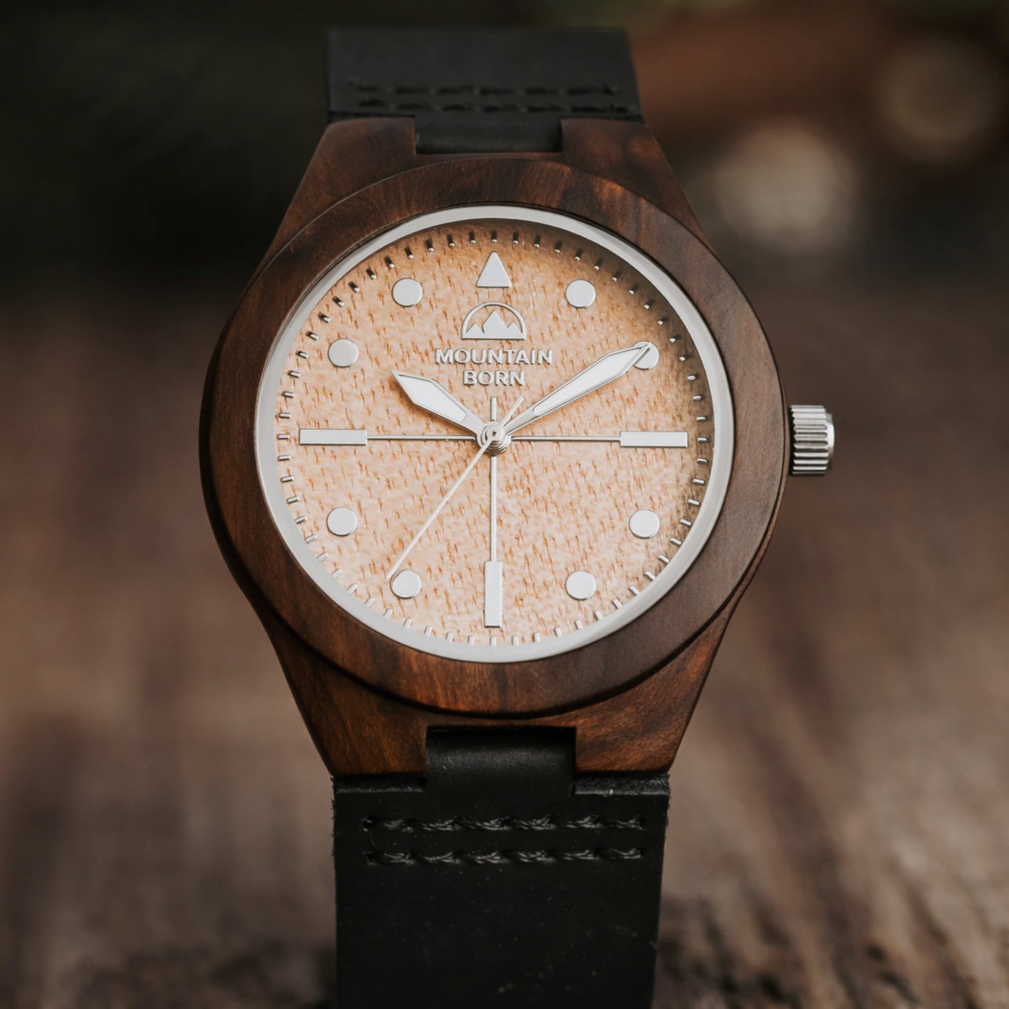 In the realm of timekeeping at Mountain Born, our wood watches are not just instruments; they're artisanal expressions of sustainability and a profound connection with nature. In stark contrast to conventional watches, each wood timepiece we create is a masterpiece, intricately designed from ethically sourced wood that tells a story of renewal and authenticity.