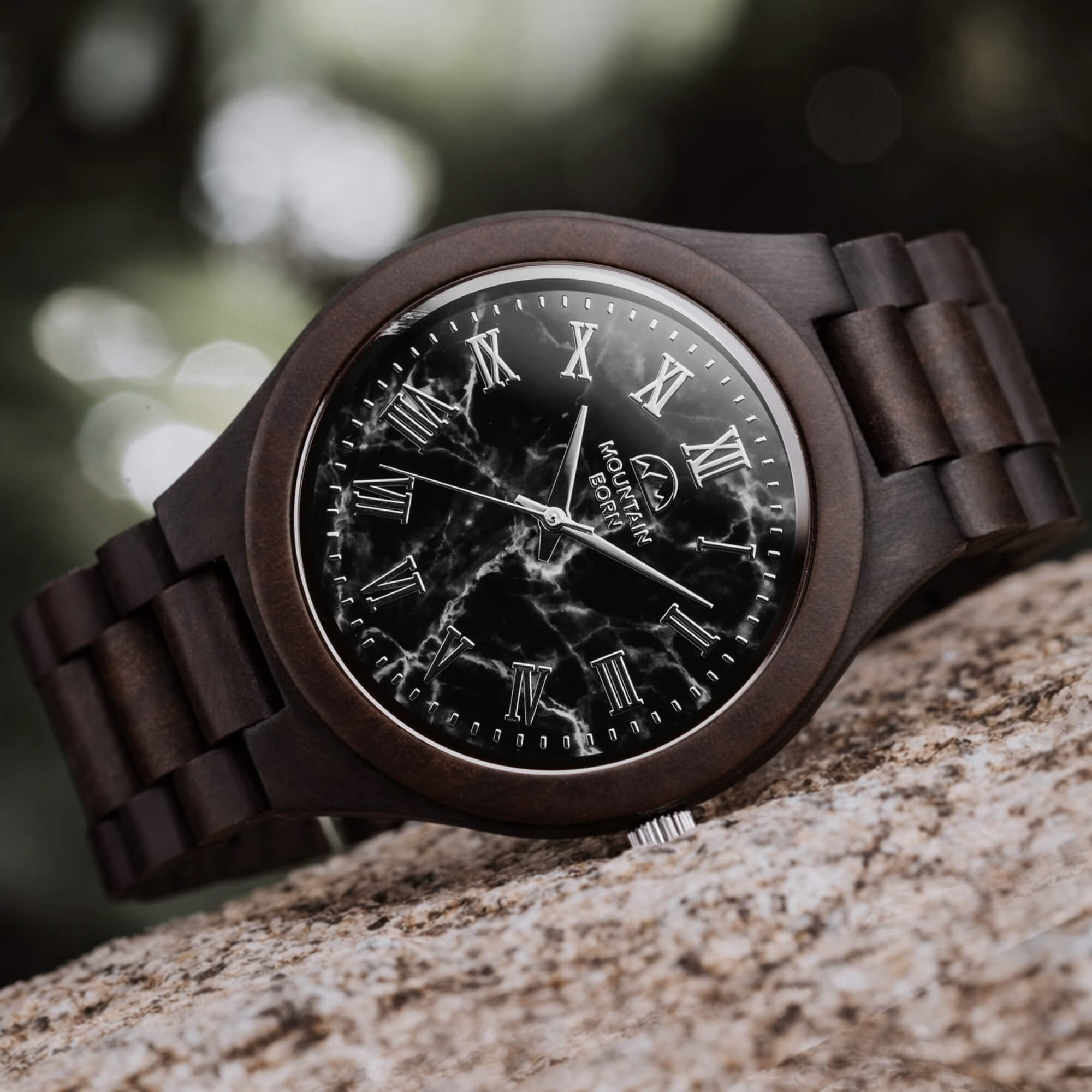 In the realm of timekeeping at Mountain Born, our wood watches are not just instruments; they're artisanal expressions of sustainability and a profound connection with nature. In stark contrast to conventional watches, each wood timepiece we create is a masterpiece, intricately designed from ethically sourced wood that tells a story of renewal and authenticity.