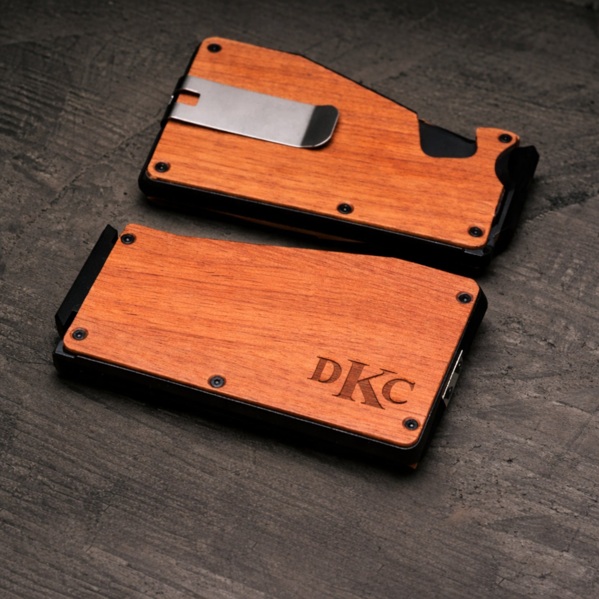 Discover the artistry and sustainability of our modern wood wallets, the ideal personalized gift for every occasion. Each wallet boasts a unique grain pattern that adds a touch of nature's beauty to your daily essentials. Elevate your gift-giving with our engraving options, allowing you to imprint initials, special dates, or heartfelt messages, transforming each wallet into a cherished keepsake. Whether celebrating a birthday, anniversary, or expressing appreciation, our wood wallets offer a distinctive and eco-conscious way to show you care.